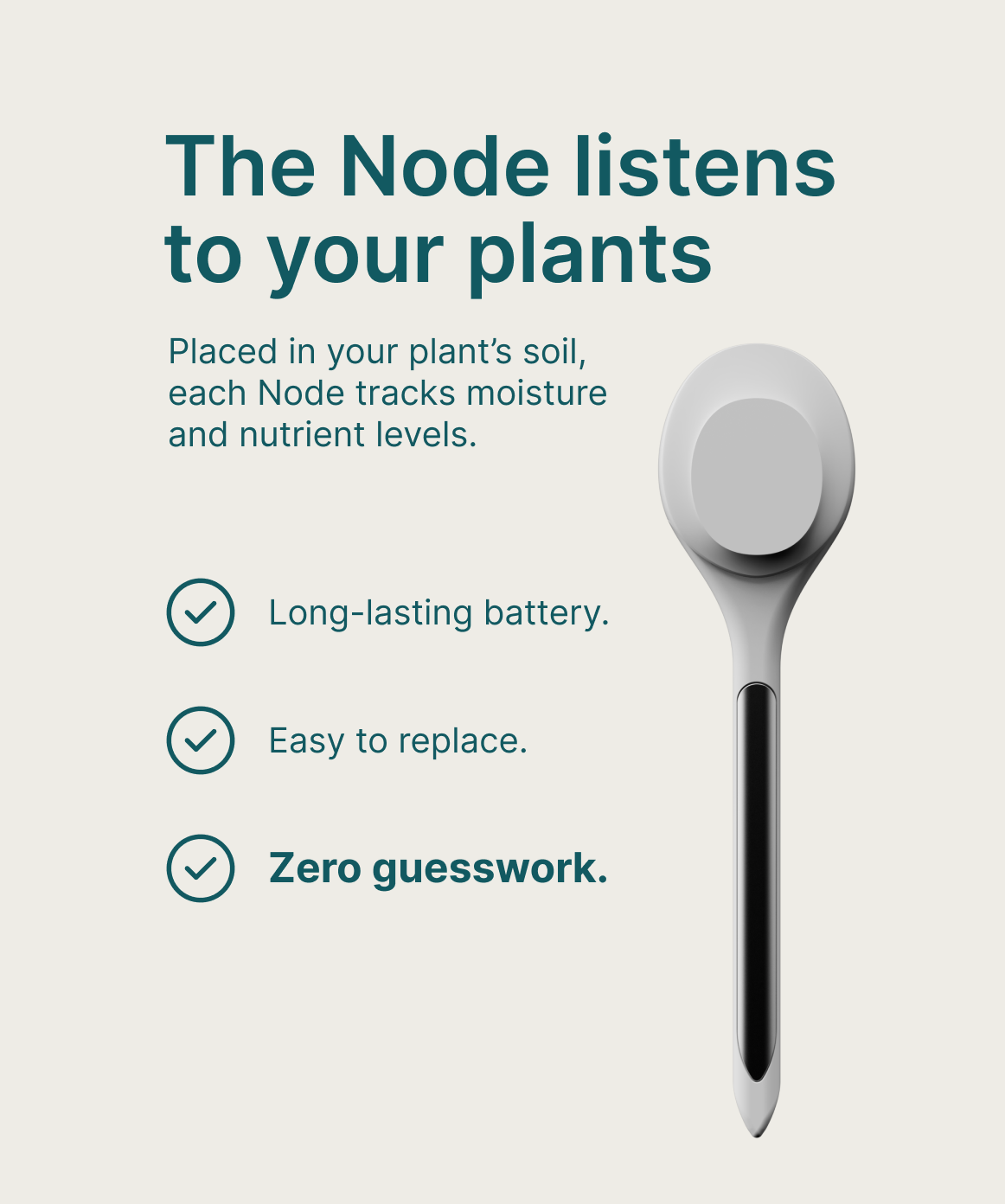 The leaflet® Hub and Node work in harmony, monitoring both your environment and your plant’s soil to paint a complete picture of health. Whether you’re growing a single pothos or an indoor jungle, Leaflet grows with you.