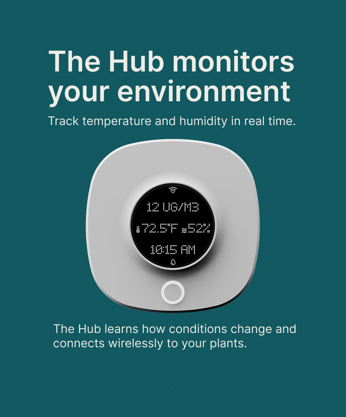 Essential tracking. Tracks temperature and humidity to keep plants thriving. Real-time display. Wall-powered.