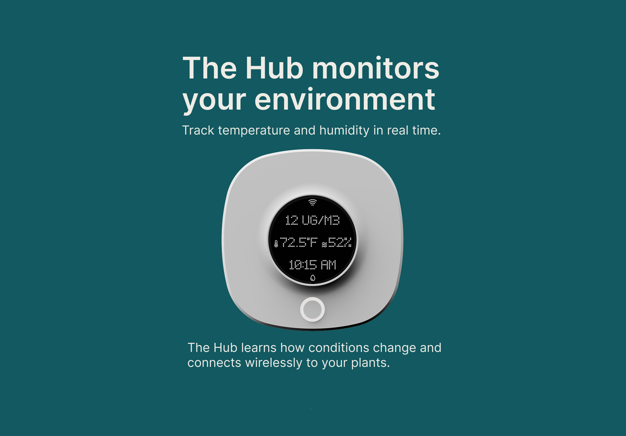 Every Hub connects seamlessly to your leaflet Nodes and app, giving you real-time insights tailored to your plants and growing space.